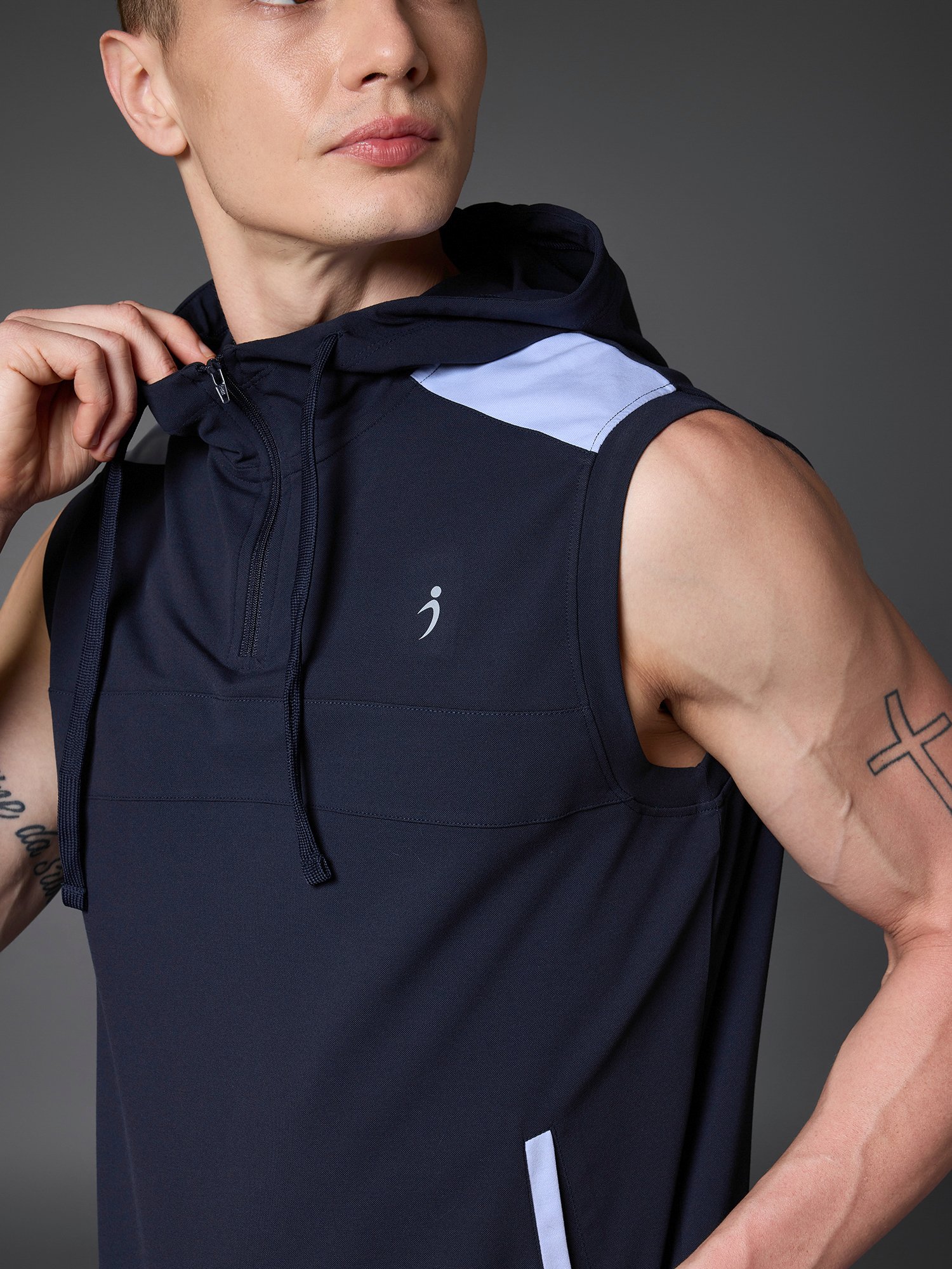 Blend of comfort and functionality with its moisture-wicking fabric and lightweight construction. Featuring a sleeveless design and a hood